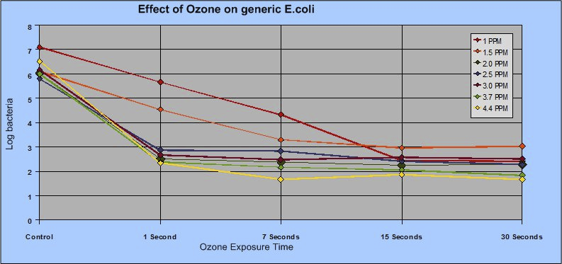 图中显示大肠杆菌减少臭氧的情况