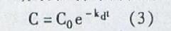 对于臭氧的衰减过程室内臭氧的浓度值,也就是说关闭臭氧发生器,S=0,则公式(2)简化为: