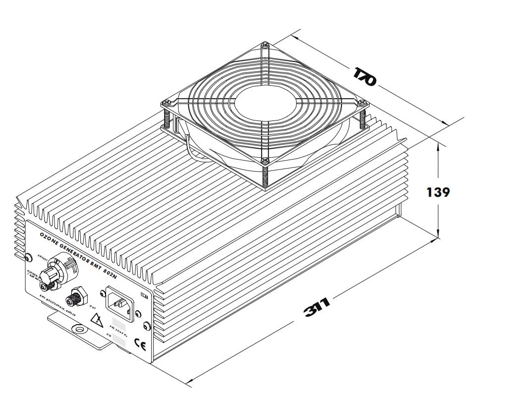 臭氧产生量4 g/h(100g/Nm3/20°C)9 g/h(BMT 803N HP)