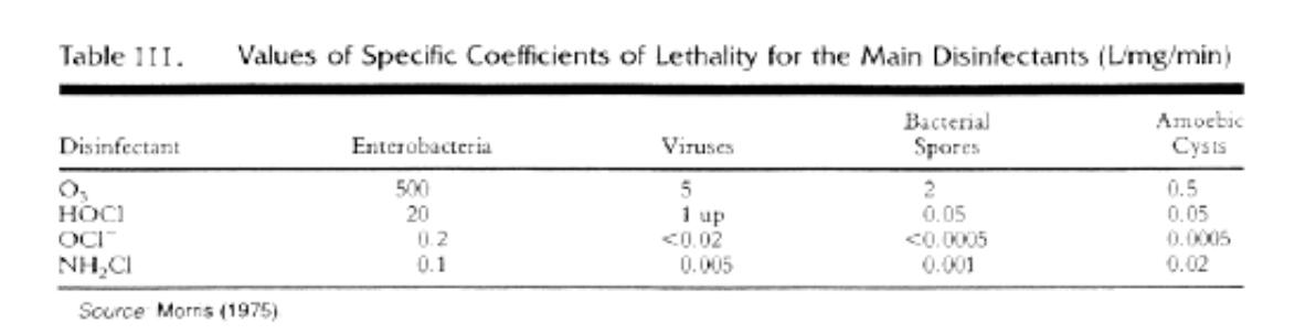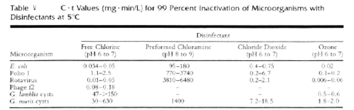 表5总结了六种不同微生物99%灭活的值。表5中的数据提供了选定的四种不同消毒剂(包括臭氧)组的推荐Ct值。一般情况下,臭氧消毒要求的Ct值明显较低。价值高于其他三种消毒剂。它们是:氯,氯胺或二氧化氯。这是因为臭氧的消毒效果要强得多。