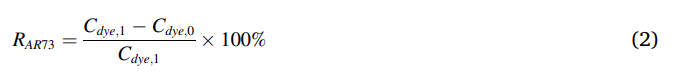 式中,RAR73为AR73降解效率,Cdye,1和Cdye,0分别为降解前后水样中AR73的浓度,mg⋅L−1。